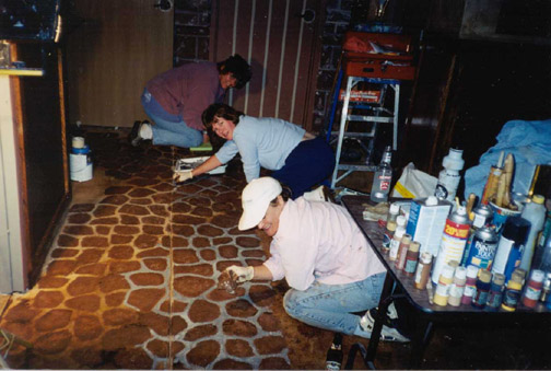 to make the floor look like cobblestone in some places. They also did the glazing of the walls to give them an old pub look.